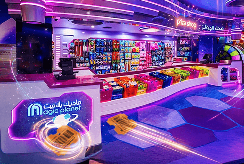تتواجد متاجر الجوائز في معظم فروع ماجيك بلانيت. كل ما عليك هو الفوز بالتذاكر البرتقالية، إدخالها في عدّادات التذاكر، ثم تمرير بطاقتك لإضافتها إلى رصيدك.